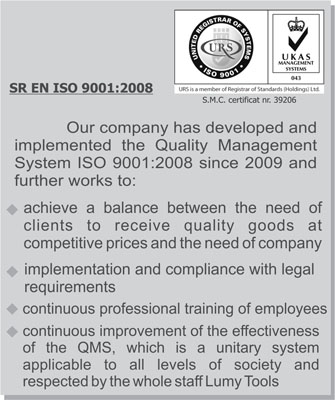 LUMY TOOLS is a trademark, the property of SC LUMY TOOLS TRANS SRL. LUMY TOOLS products addresses both professionals - craftsmen, artisans, painters, etc. in construction and finishes, and also to the segment DIY (do-ityourself)..